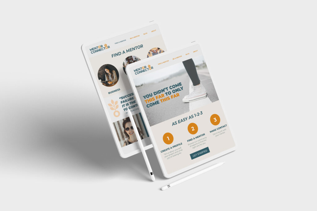 There’s potential to learn on both sides of the mentoring process, this is reflected by the use of orange in the words. The use of orange in both words also works as a connecting element. Growth is symbolised by the leaves growing from the ‘o’ in ‘connector’.